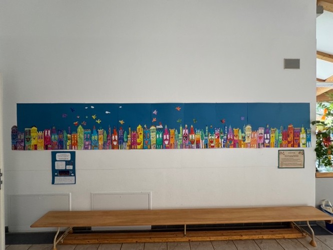 Große bunte Häuser mit lustigen Gesichtern und Kakteen die Fratzen schneidend einen angrinsen. Das sind die Werke der Grundschule Babensham inspiriert vom US- amerikanischen Künstler James Rizzi. Im Rahmen des „Projekttags Kunst“ konnte die Schülerschaft zusammen an zehn unterschiedlichen Projekten arbeiten und in die kreative Welt von James Rizzi eintauchen. Nach einem kurzen Überblick über Rizzis Leben und Schaffen, ging es auch schon gleich zur Sache: Während die einen Kakteen Kartenhalter bastelten, malten die anderen die Fassade Wasserburg a la James Rizzi und wieder andere bastelten aus alten Milchkatons Rizzi Häuser.