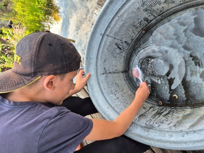 Am Teich haben wir viele Teichbewohner fangen dürfen und haben sie mit der Lupe genauer untersucht. Zum Schluss gab es noch ein Eis und eine Regendusche. Schön wars!
