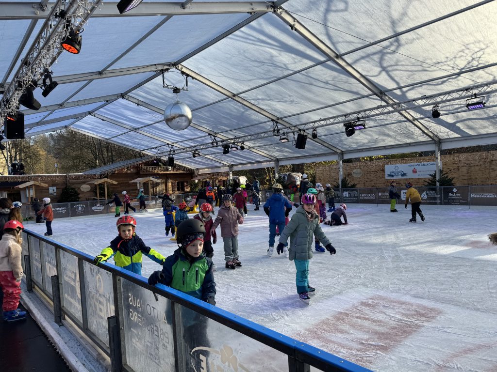 Die Kinder durften als Erste die frisch eröffnete Eisbahn testen. Sie hatten viel Spaß beim Schlittschuhlaufen und genossen einen schönen Tag auf dem Eis!