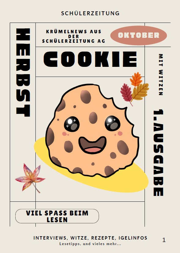Unter der Leitung von Elisabeth Schulz und Johanna Weller treffen sich dienstags alle zwei Wochen acht motivierte Kinder, um zu recherchieren, zu malen und zu gestalten. Gemeinsam entsteht daraus unsere eigene Schülerzeitung – „Cookie“!